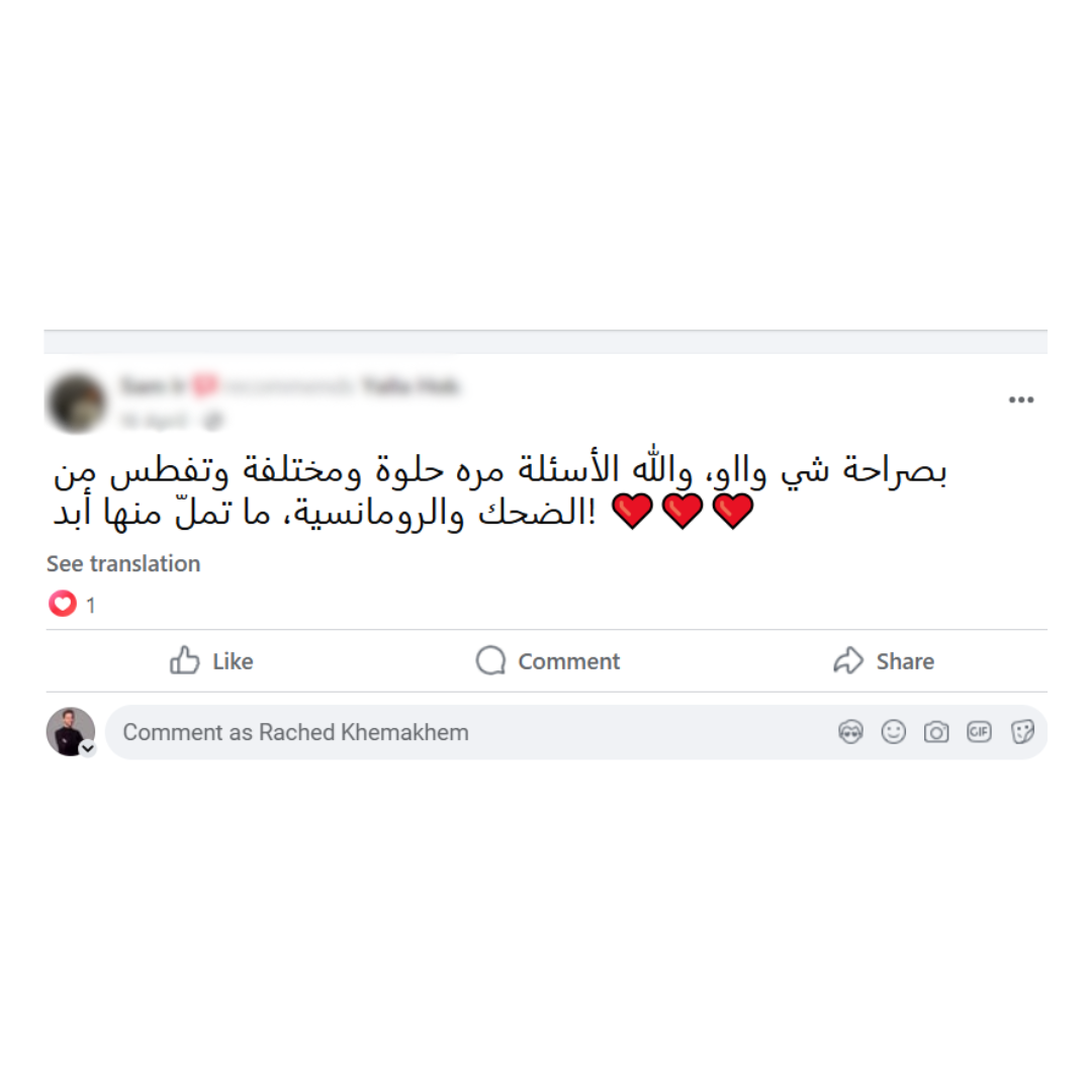 أسئلة خفيفة تفتح مواضيع جديدة بدون ضغط أو إحراج… وتخليكم تحكوا من القلب.